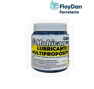 La Grasa Multipropósito Mohican® es un producto especialmente formulado para proteger y lubricar superficies metálicas sujetas a utilización constante. FORMULA AVANZADA Para uso en lubricación de equipos industriales, automotores y agrícolas. Excelente estabilidad mecánica. Gracias a su fórmula permite proteger y mantener superficies sujetas a constante roce y fricción. Elaborado con aceites básicos de alto grado de refinación, jabón de litio y aditivos que le confieren cualidades antioxidantes y anticorrosivas. Buena consistencia, resistencia y capacidad de soportar altas cargas. Beneficios: – Resiste extrema presión y temperatura – Reduce temperatura, fricción y desgaste – Previene moho, corrosión y reduce el ruido – Resistente al arrastre del agua – Lubrica ante grados de temperatura extrema – Maximiza la vida útil y desempeño de los equipos Aplicaciones: Automotriz, marino, industrial, lubricación de chasis, juntas de rótulas, baleros de ruedas, baleros sujetos a agua fresca o salada, bujes, cojinetes, válvulas y cientos de aplicaciones más.